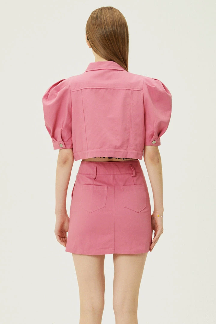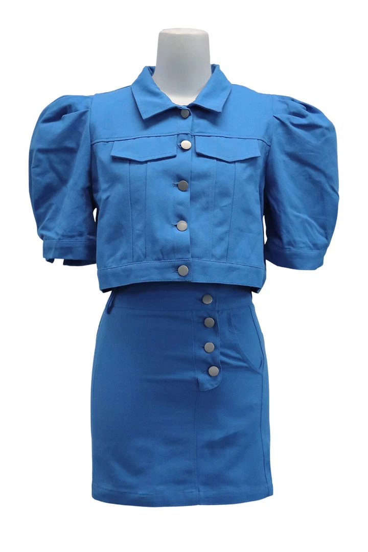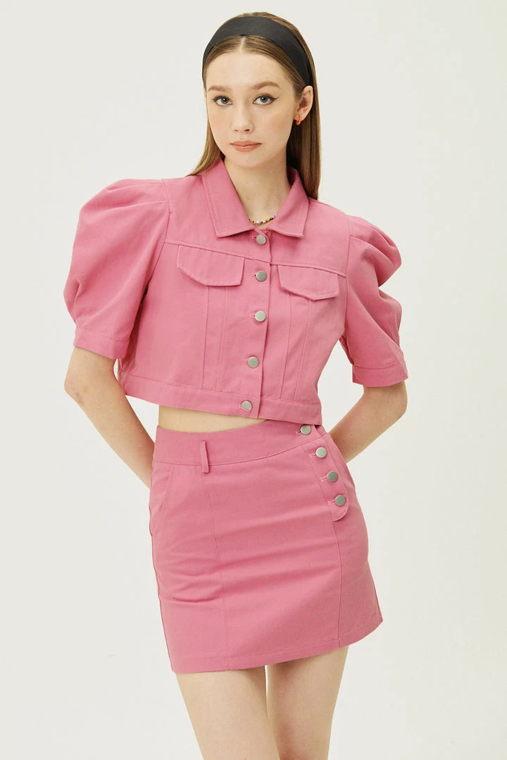 - Jacket: Front button closure, unfunctional pocket, puff sleeve, unlined