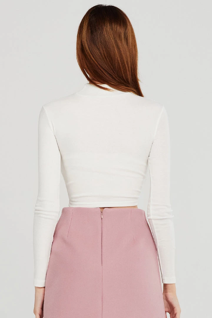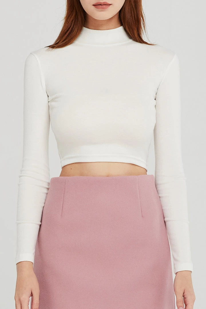 - Featuring a high neckline, cropped length, fitted silhouette, and pull on style