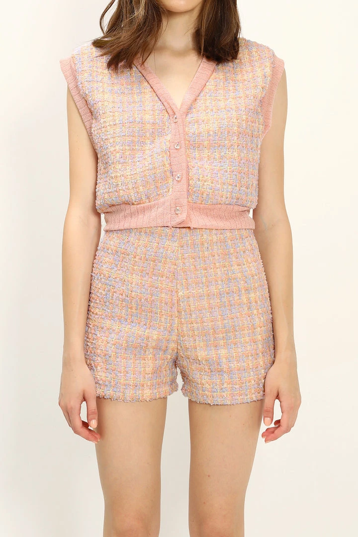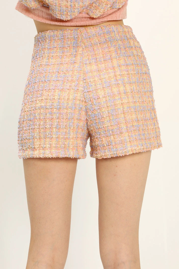 - Summery tweed shorts in candy color