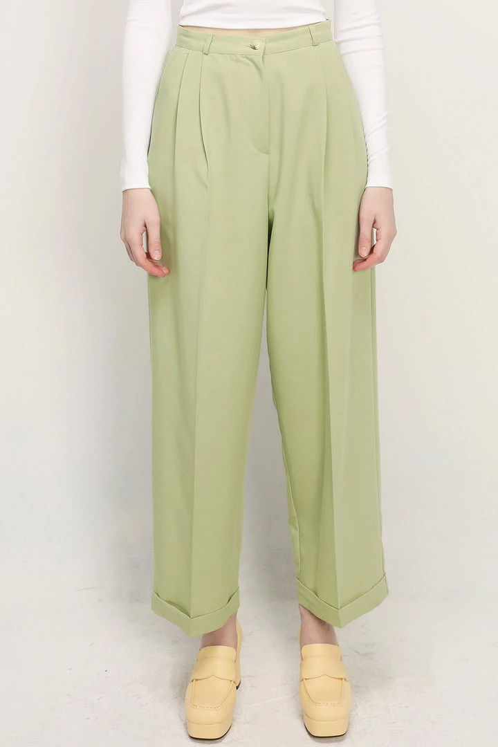 - This pant featuring a wide-leg silhouette, a pintuck detail at waist for comfy fit, a cuffed hem, and full length