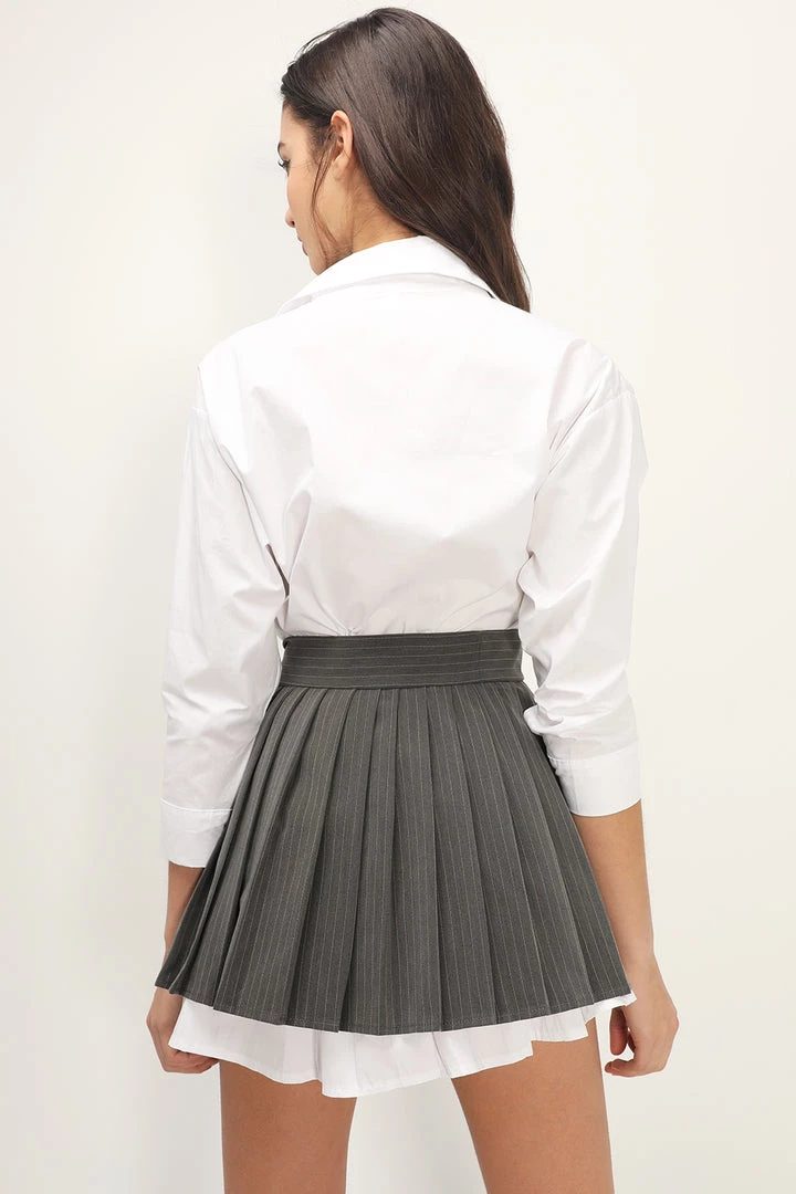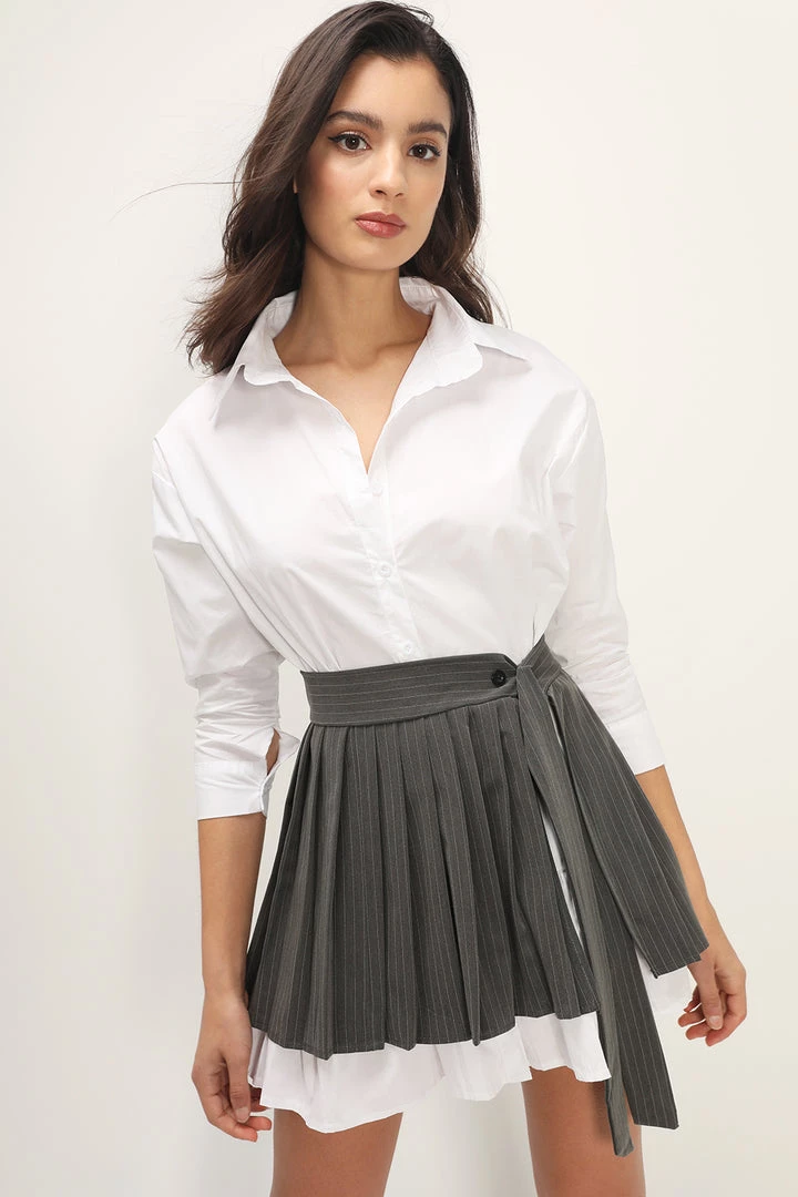 - Co-ord set; A shirt dress and a self-tie pleated skirt belt 2-piece set