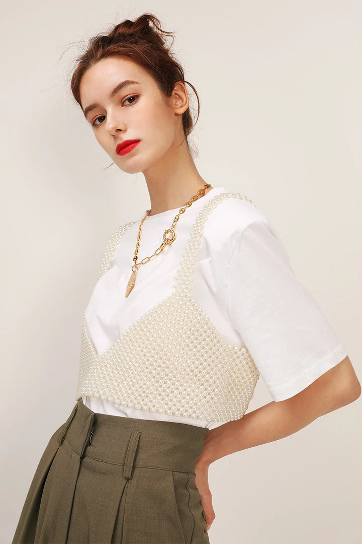 - Featuring a beaded faux pearl design, a structured silhouette design and pull on style