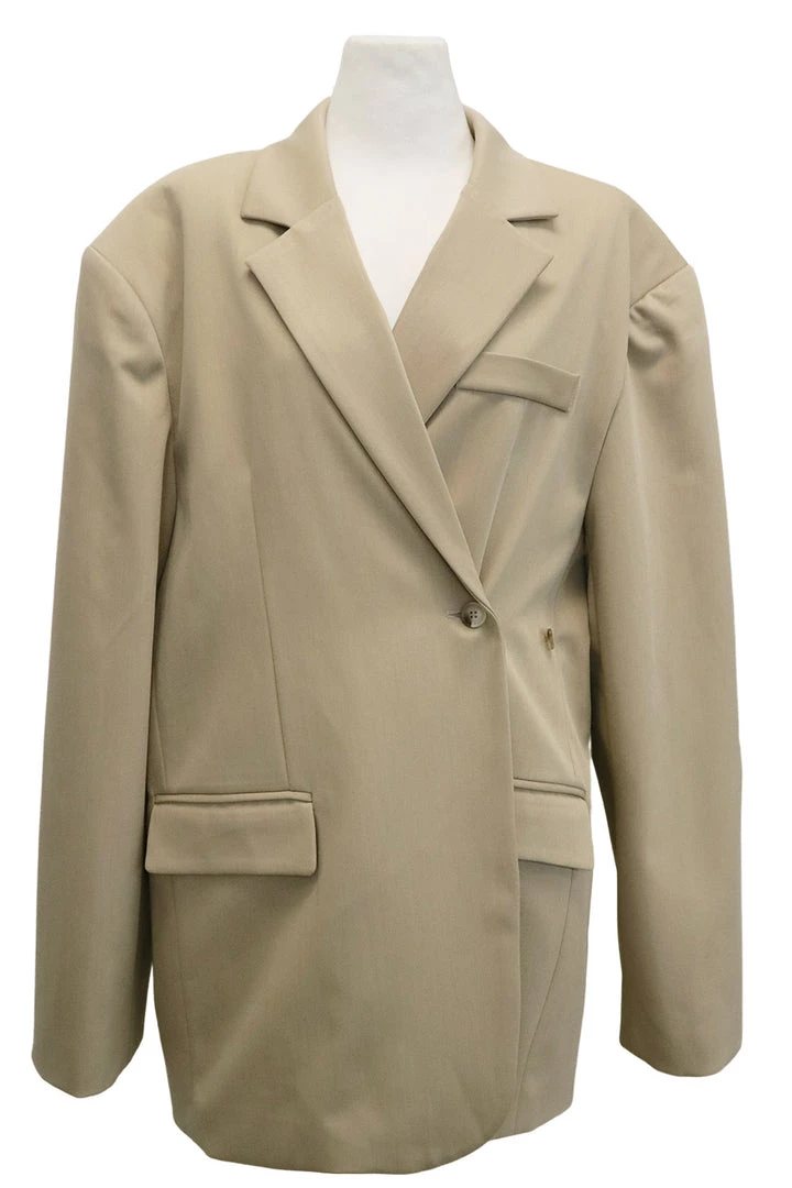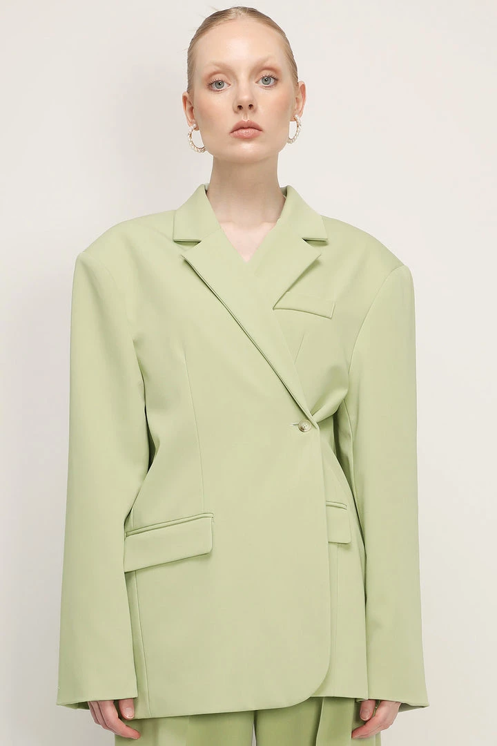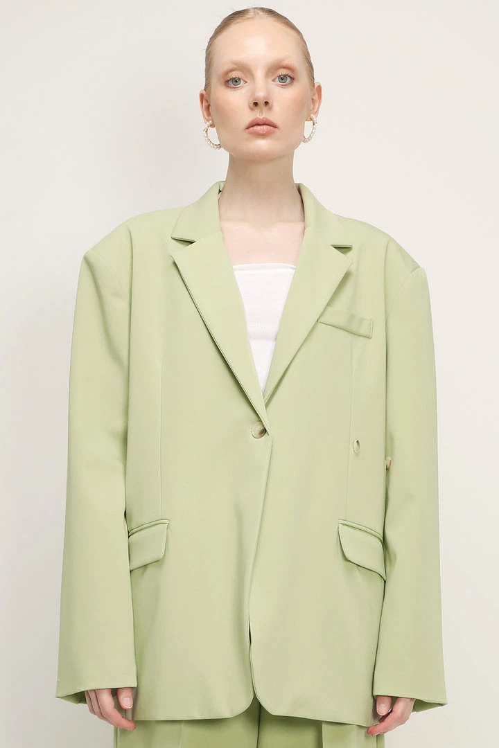 - This blazer features an oversized fit silhouette, double patched pocket, a single breast silhouette, and a back-slit with button design