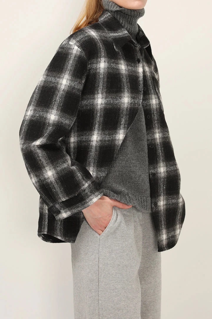 - This shacket features a check printed material all over, a comfy fit silhouette, a quilted lined finish, and button closures at front