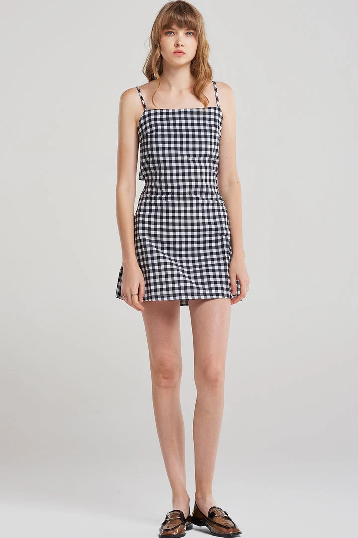 Lovely gingham check dress with adjustable strap.