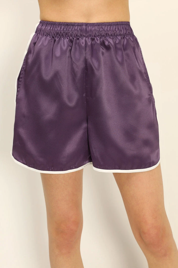 - This shorts features a lightweight satin material all over, an elasticized waist band with a drawstring detail, line details at side, dual slant pockets, and slip on style