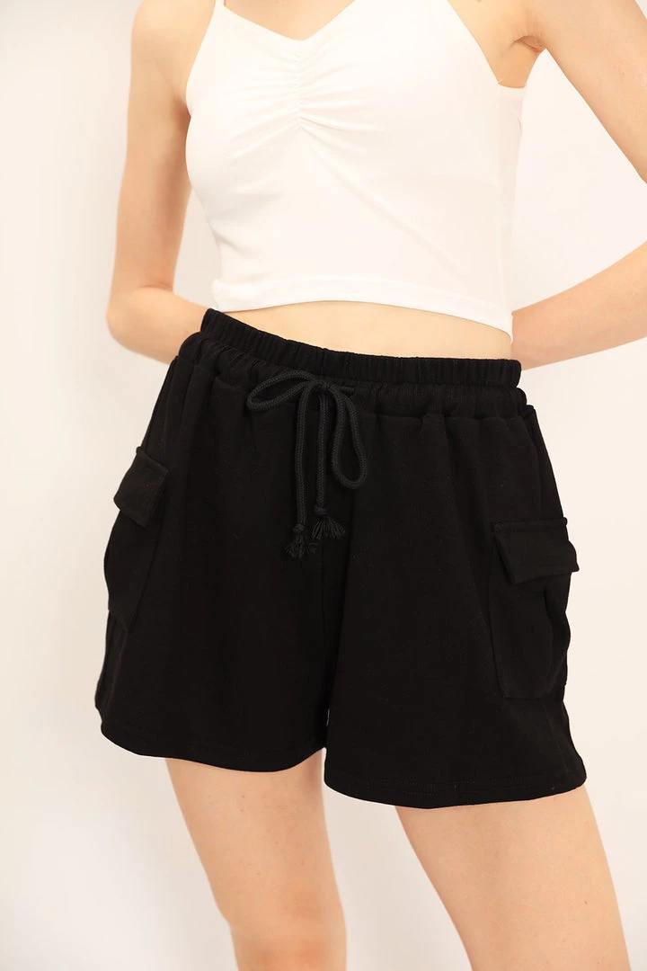 - Featuring a cotton material all over, an elasticized waistband with a functional drawstring, dual patched cargo pockets at sides, and slip on style