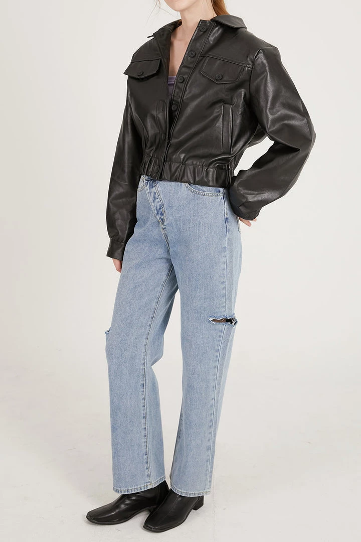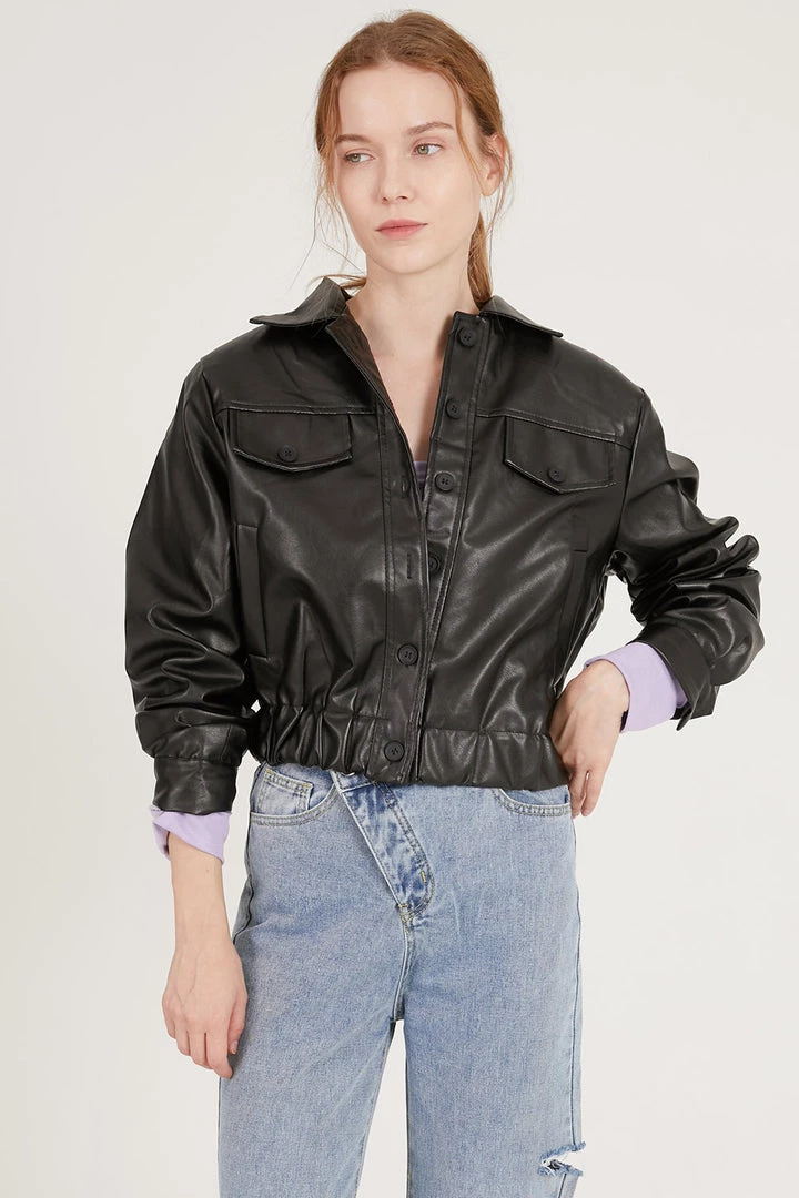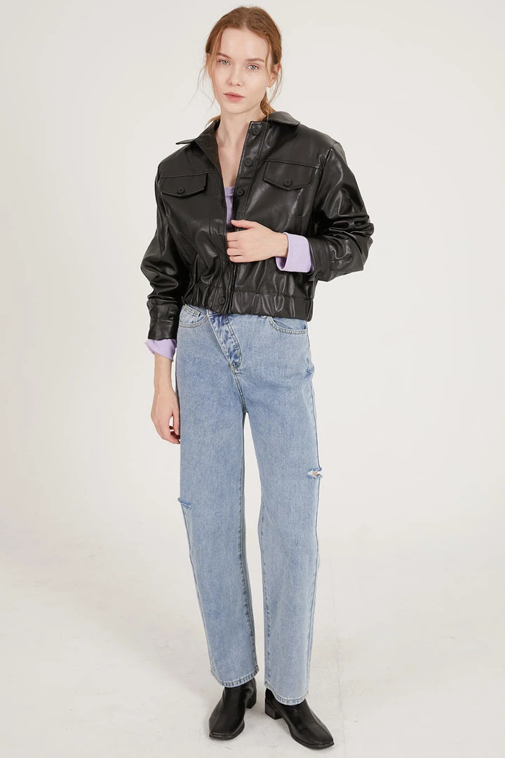 Naomi Faux Leather Bomber Jacket