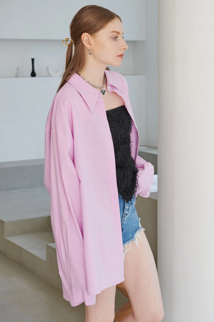 - This shirt features a cotton material all over, an oversized boyfriend fit silhouette, a collared neckline, button down closures at front