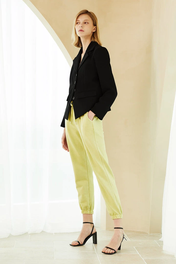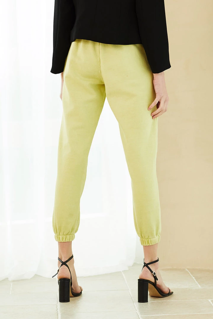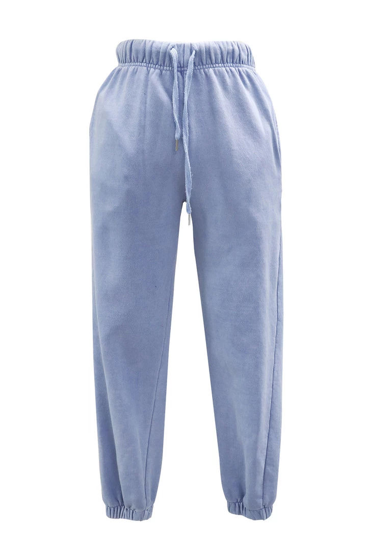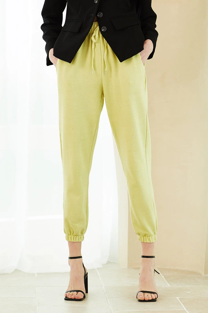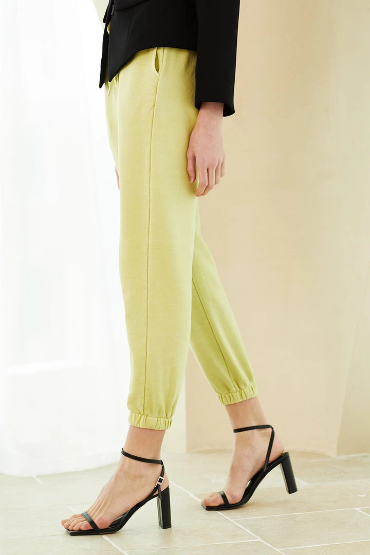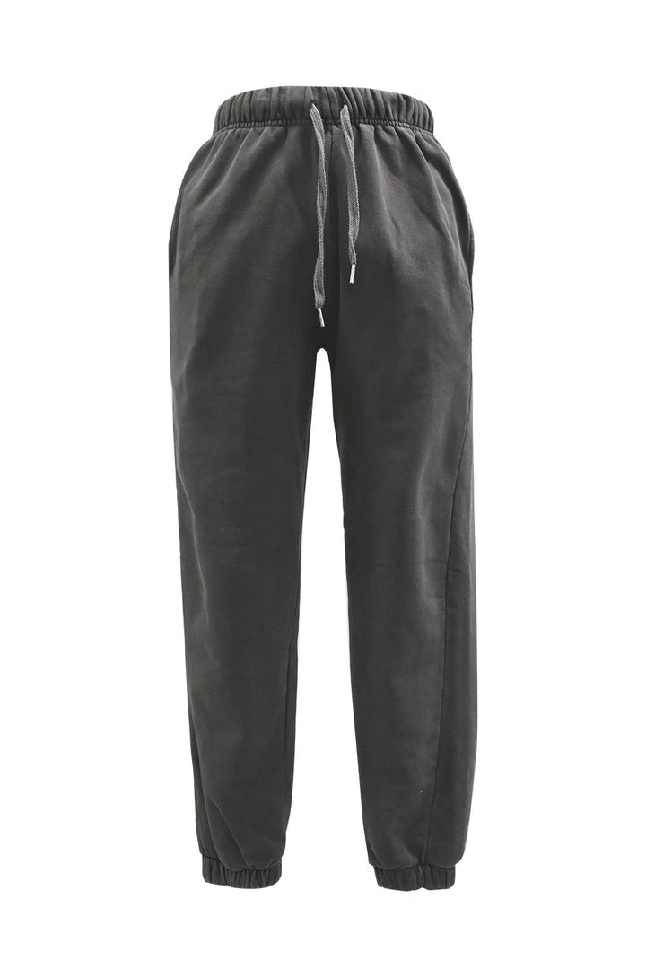 - This sweat jogger pants featuring an elasticized waist with a drawstring, smocked hems, dual slant pockets, and slip on style