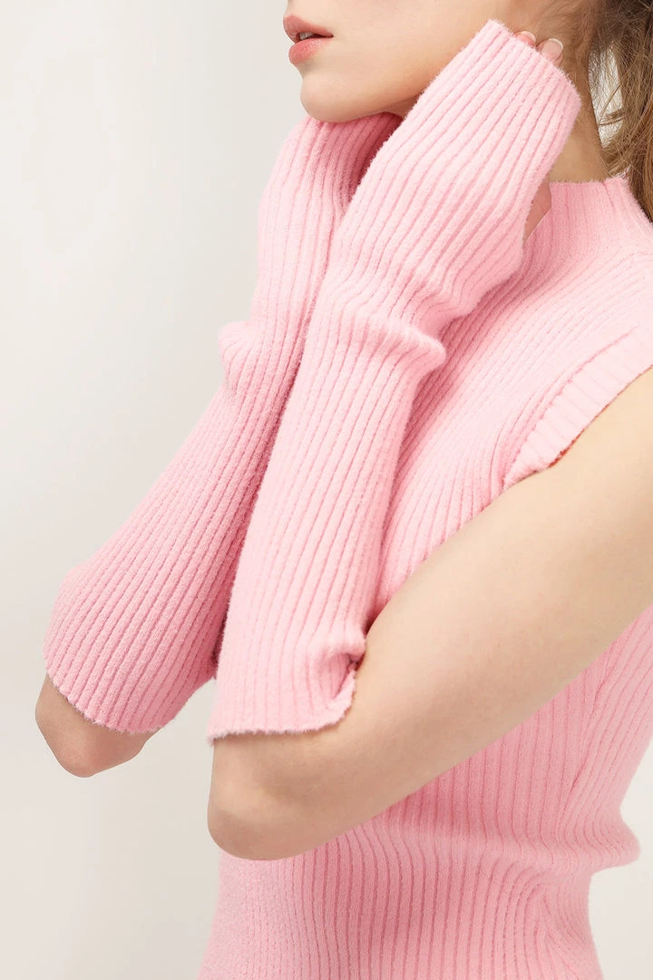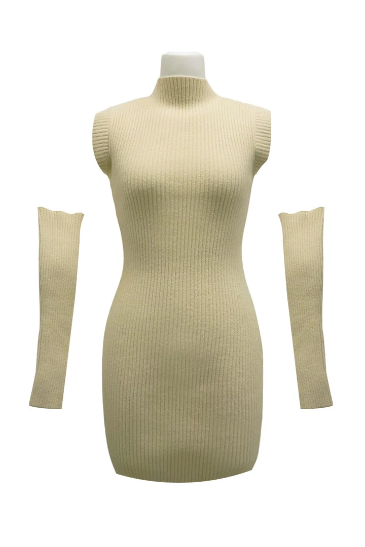 - The co-ord set ; A ribbed knitted sleeveless dress and arm warmers set