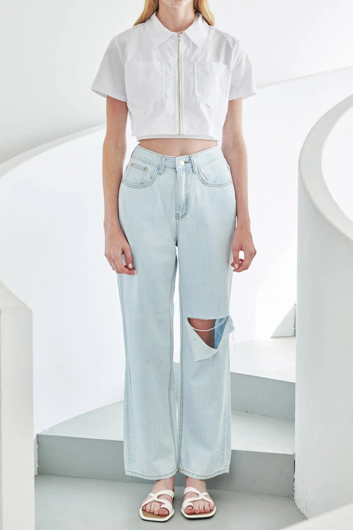 Evie Zipper Crop Shirt