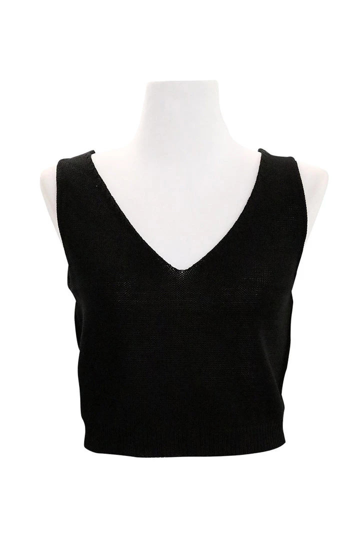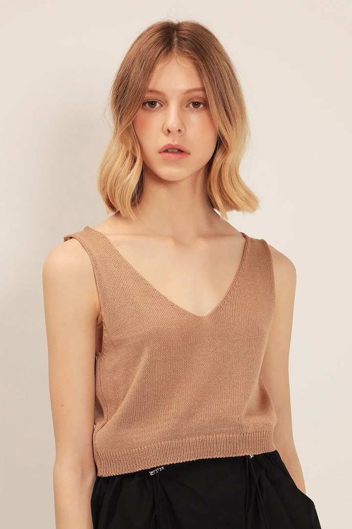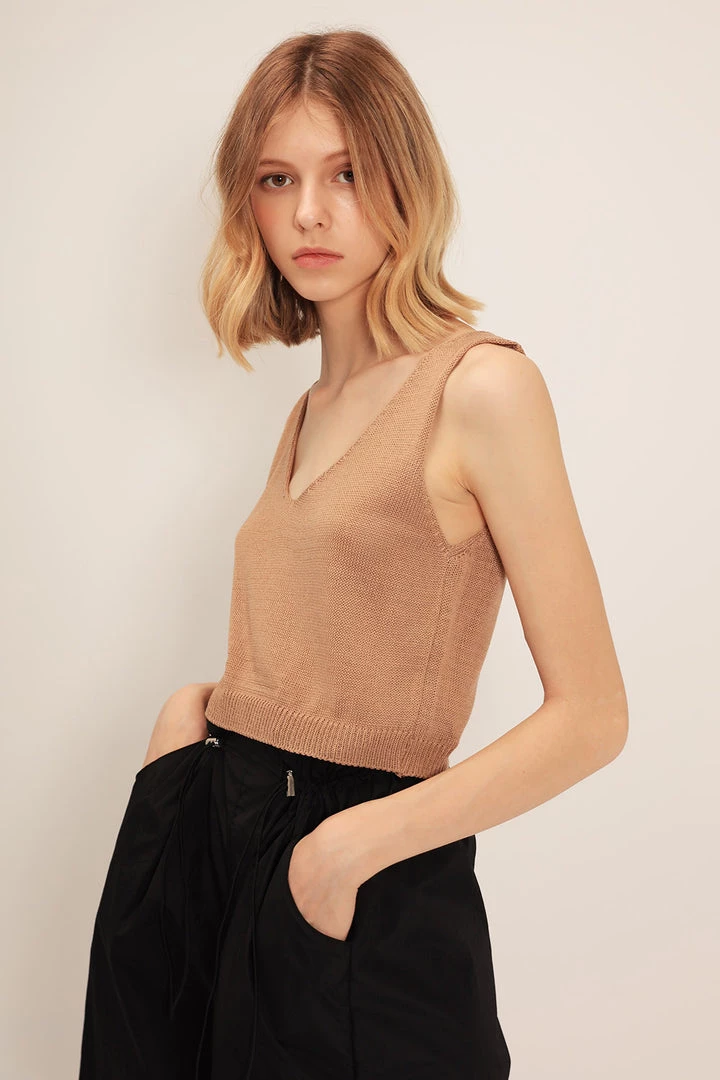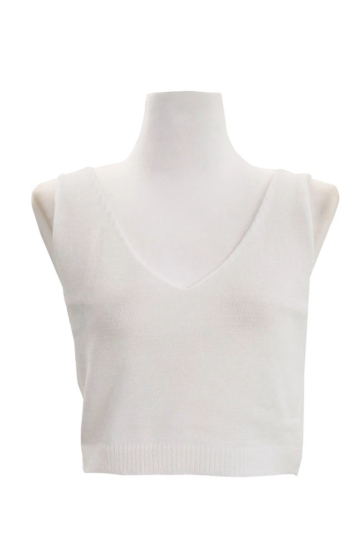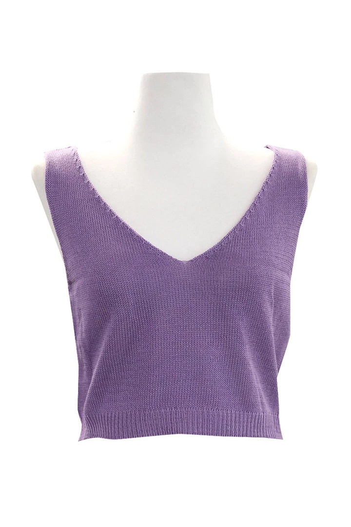 - This top features a knit material all over, a cropped length silhouette, a plunge neckline at front & back, and pull on style