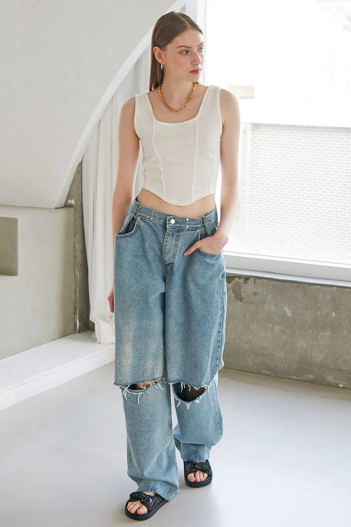 Model’s height is 5′ 5″ (170cm) Bust 31.4in Waist 22.4in Hip 34.2in and wearing S/M