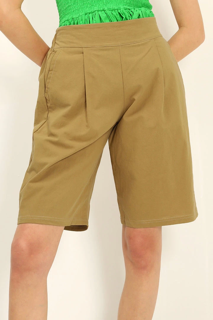 - Featuring a cotton material all over, a pintuck detail at waist, dual slant pockets at sides, and a bermuda length silhouette