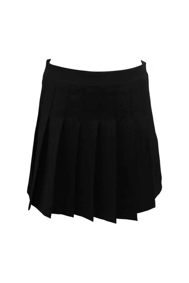 - This skort features a pleated detail all over, a high waist silhouette, a mini length, and a concealed zipper closure at side