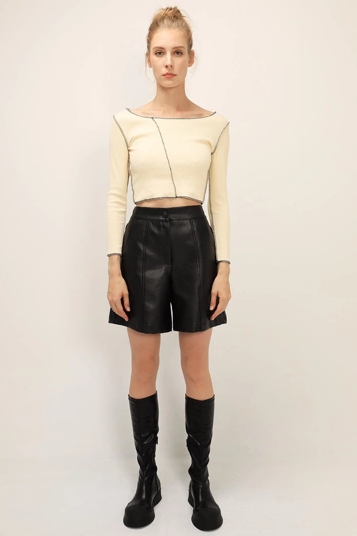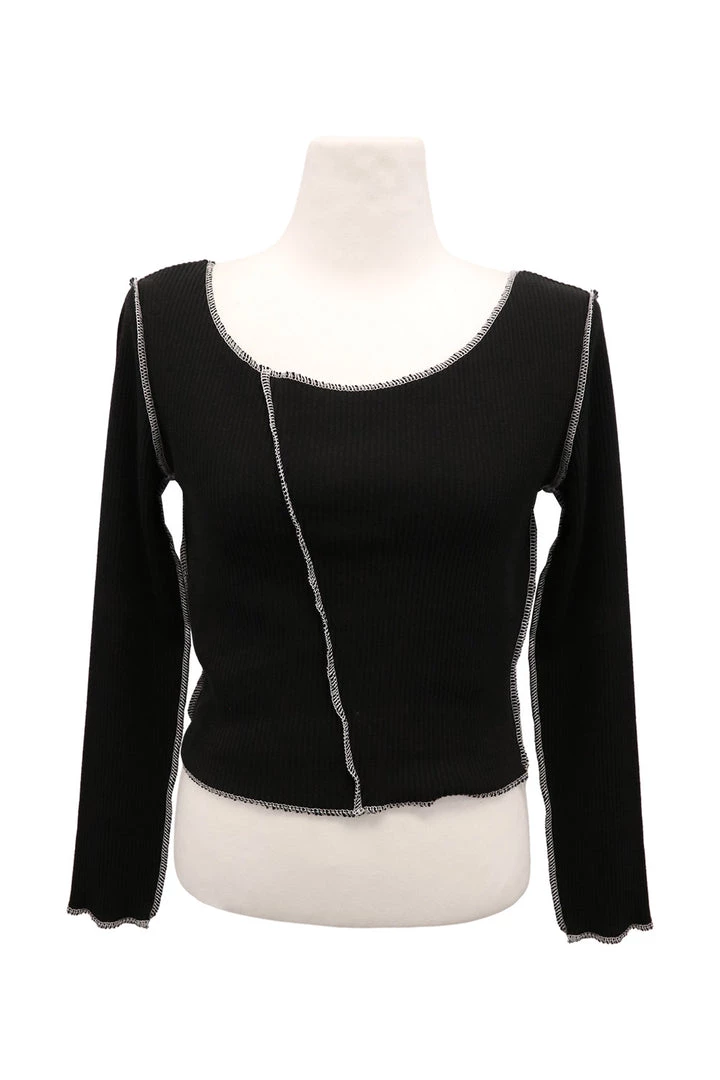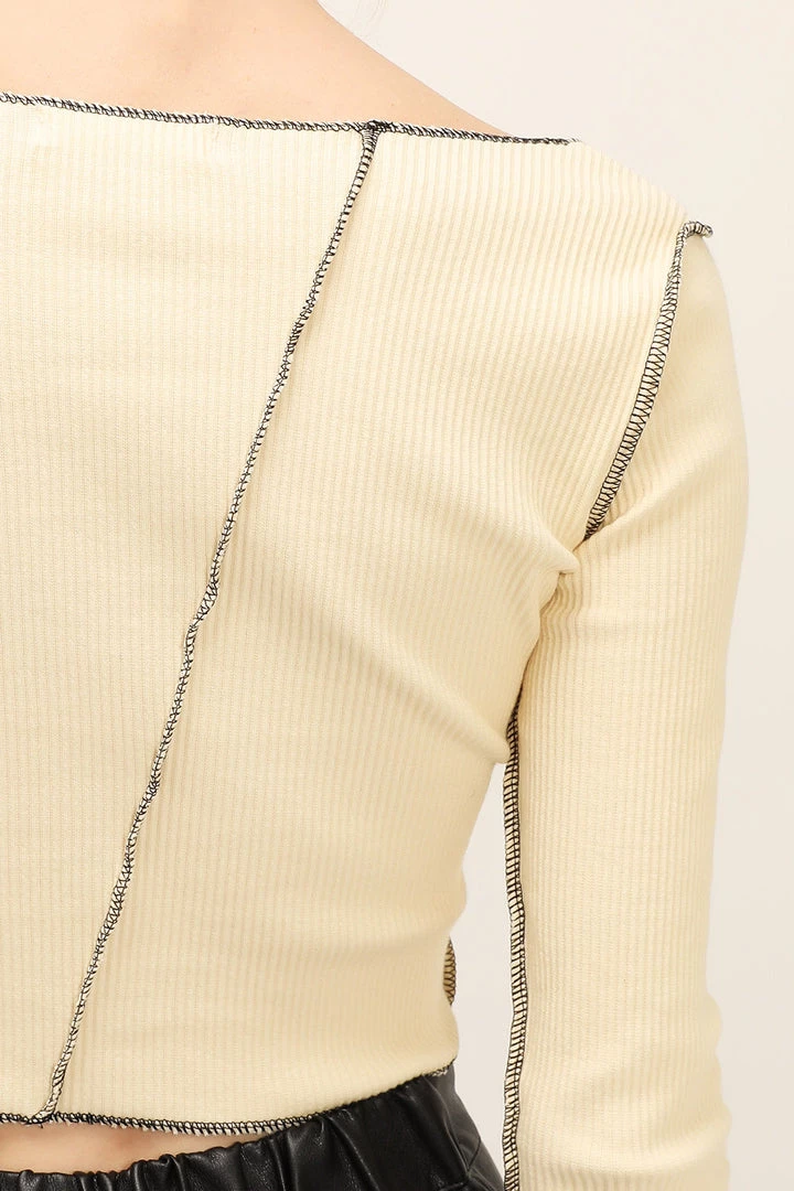 - This top features a ribbed material all over, a cropped length silhouette, a contrast stitch trimming detail, and pull on style
