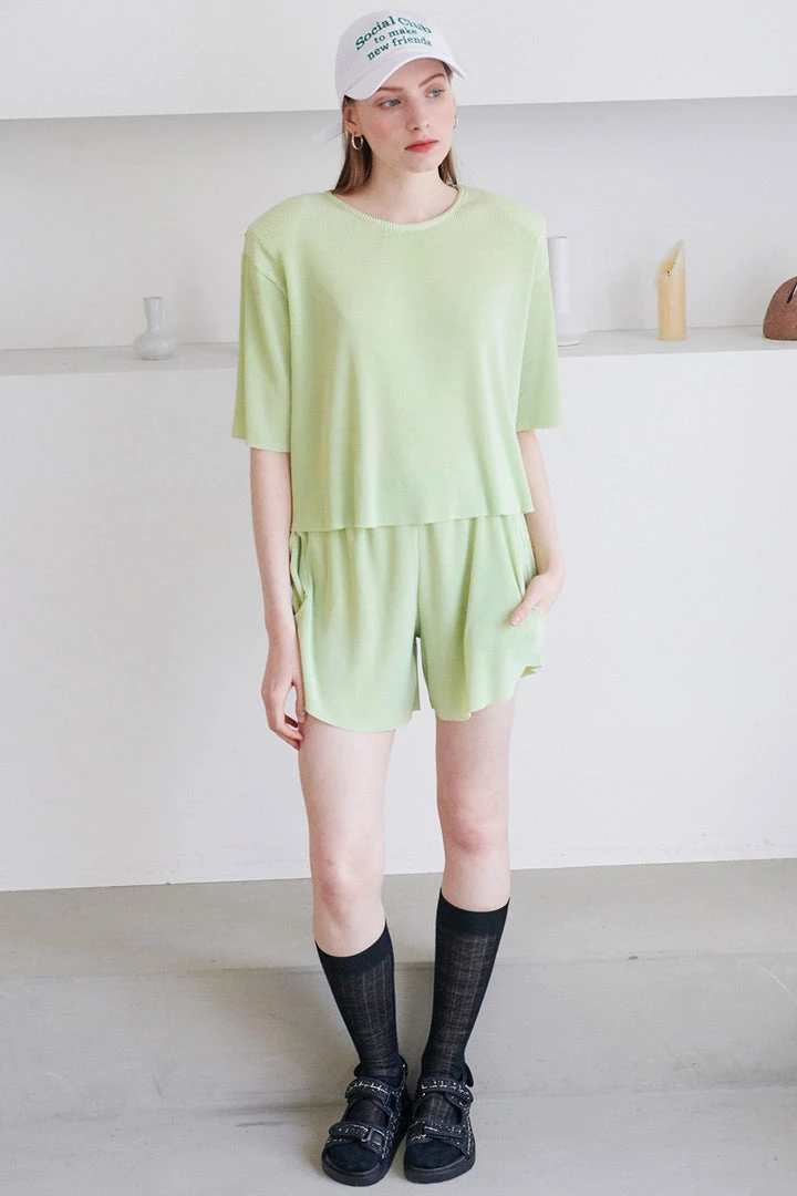 - Top: Round neckline, short sleeve with shoulder pads, comfy & regualr fit