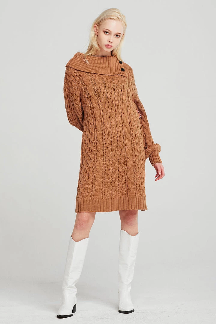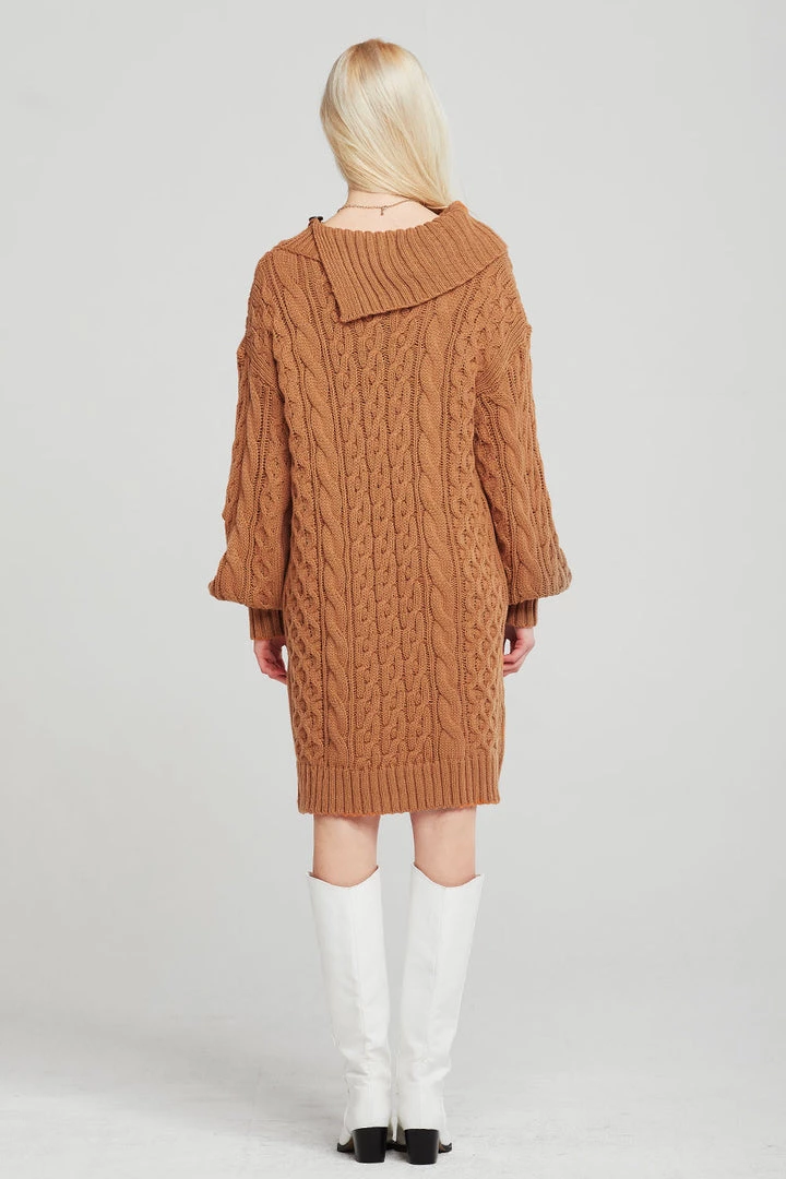 Mila Folded Collar Cable Knit Dress
