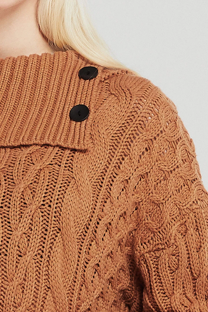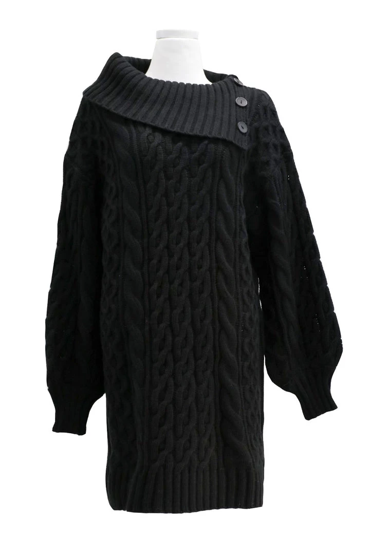 - Featuring a cable-knit material all over, a folded collar with buttons detail, a knee length silhouette, and pull on style