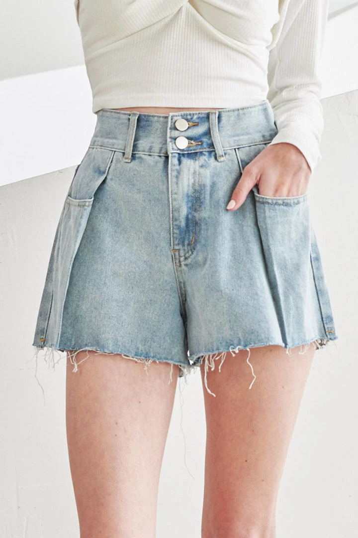 Nyra Pintucked Denim Shorts