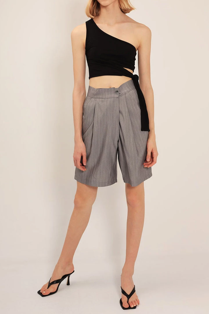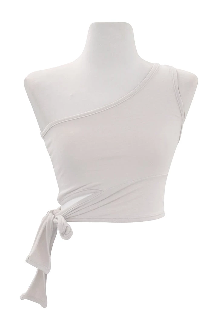 - This top features an asymmetric shoulder design, a cropped length silhouette, a self-tie detail at waist, and pull on style
