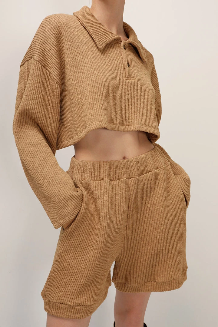 - Go complete look with the matching Alice Ribbed Crop Shirt