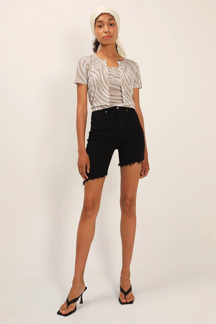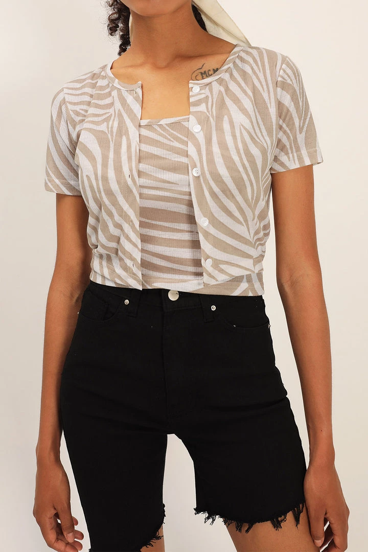 - The co-ord set ; A zebra printed fitted cardigan and a cami-top 2-piece set