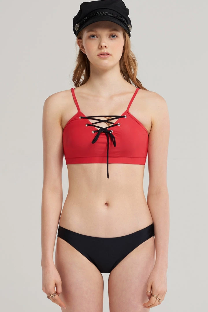 Eyelet lace-up detail is everything in this bralette bikini top. Match with any solid bikini bottom like you never intended. * Product Specification Nylon 82% Polyester 18% * Professional Clean Only Model’s height is 5’7″ (174cm) and wearing S