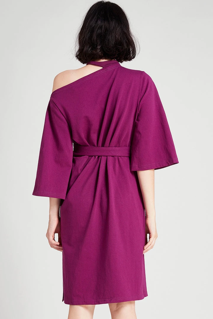 This fab dress comes with a long belt that looks striking with a ring buckle. It features an innovative choker neck that leaves one shoulder bare. It’s a fabulous addition to any wardrobe due to how little fuss this look is. *Product Specification Cotton 100% *Flat Measurement : S : Shoulder: 39cm (15.35in) / Bust: 51cm (20.07in) / Length: 95cm (37.40in) / Sleeve : 39cm (15.35in) *Professional Clean Only Model’s height is 5’9″ (175cm) and wearing S
