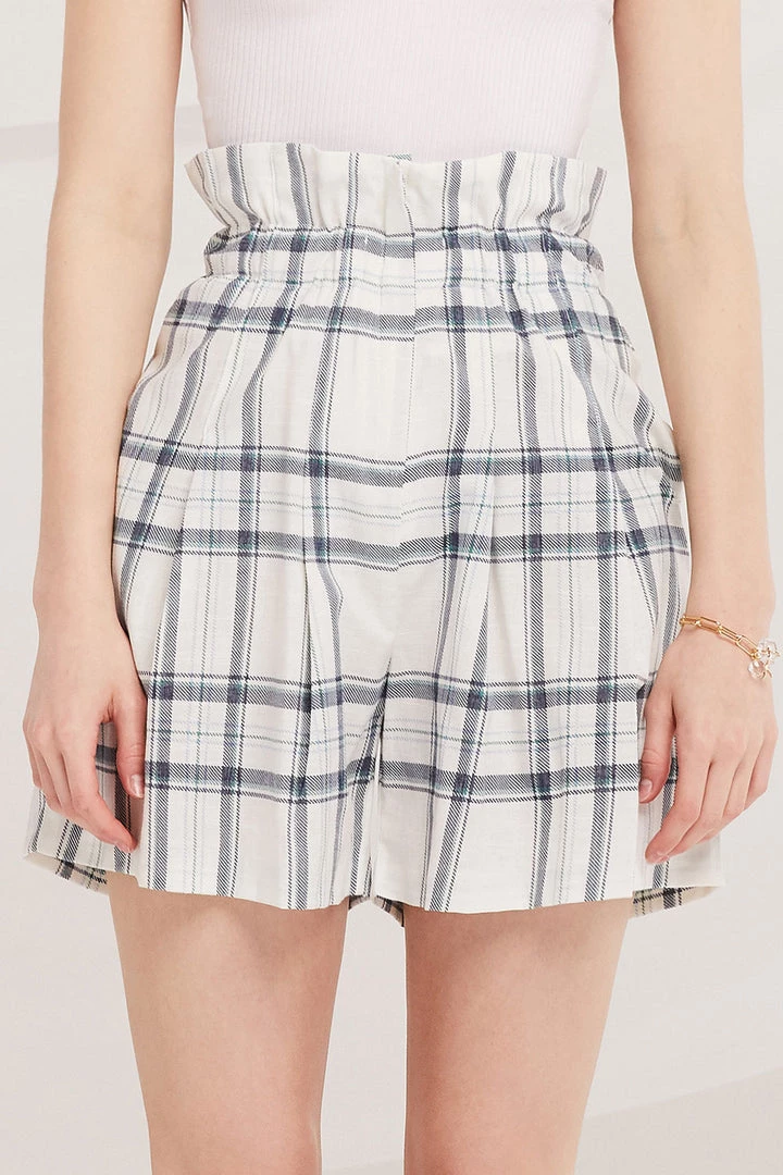 - Featuring a plaid check print allover and high-rise paperbag waist fit