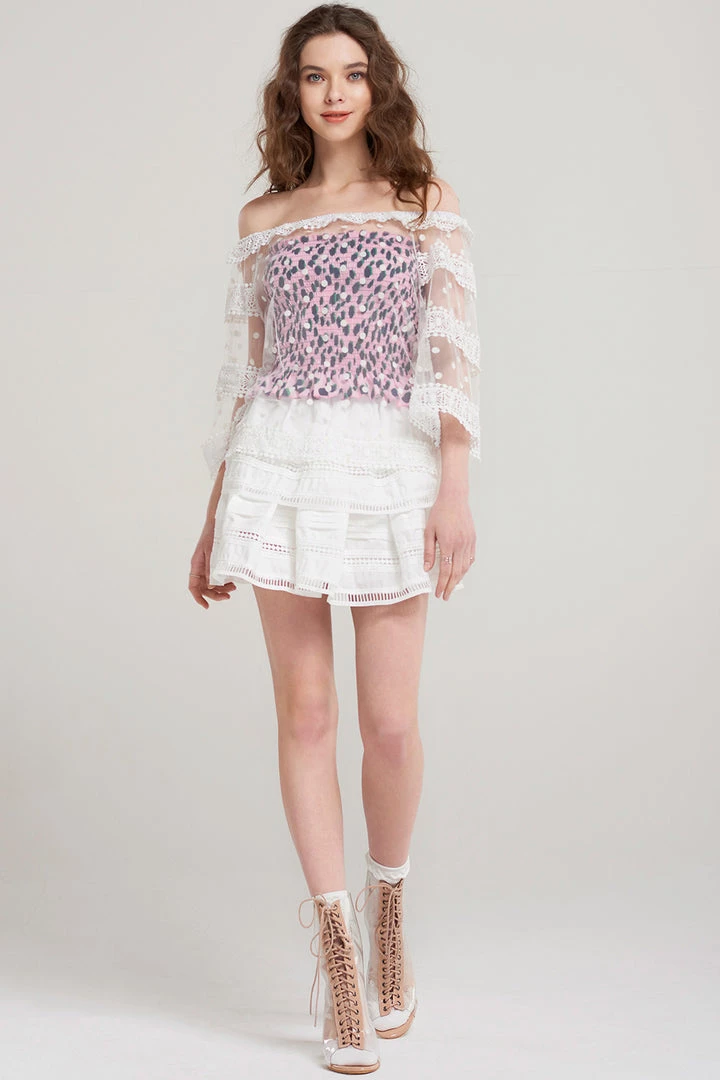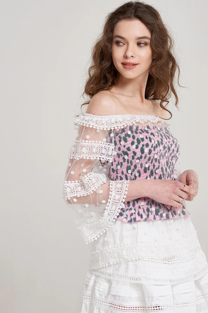 STORETS SALE Fleur Wide Lace Stripe Blouse CLOTHING