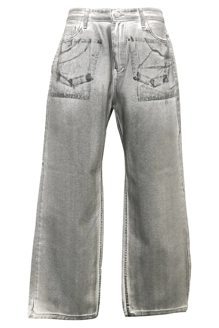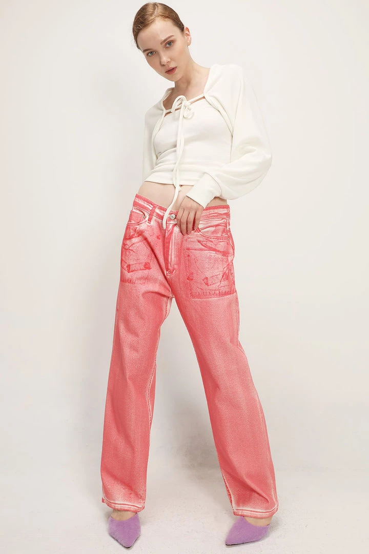 - Featuring a cotton material all over, a wide fit silhouette, a zip fly closures at front, and dye print all over