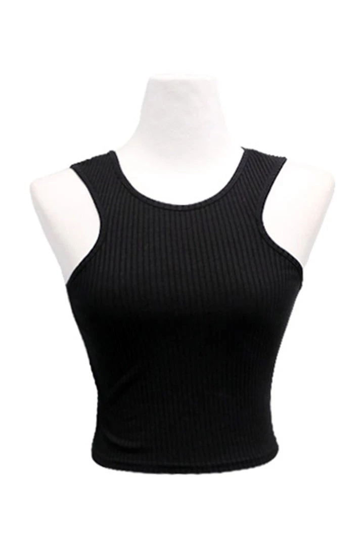 - This top features a ribbed material all over, a cropped length silhouette, a deep cutting armhole design, a fitted, and pull on style