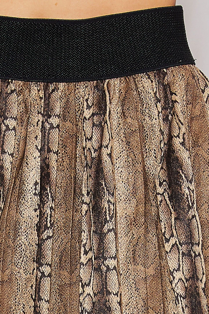 - Featuring a python printed material all over, an elasticized band at waist, a pleated detail, and a mini length silhouette