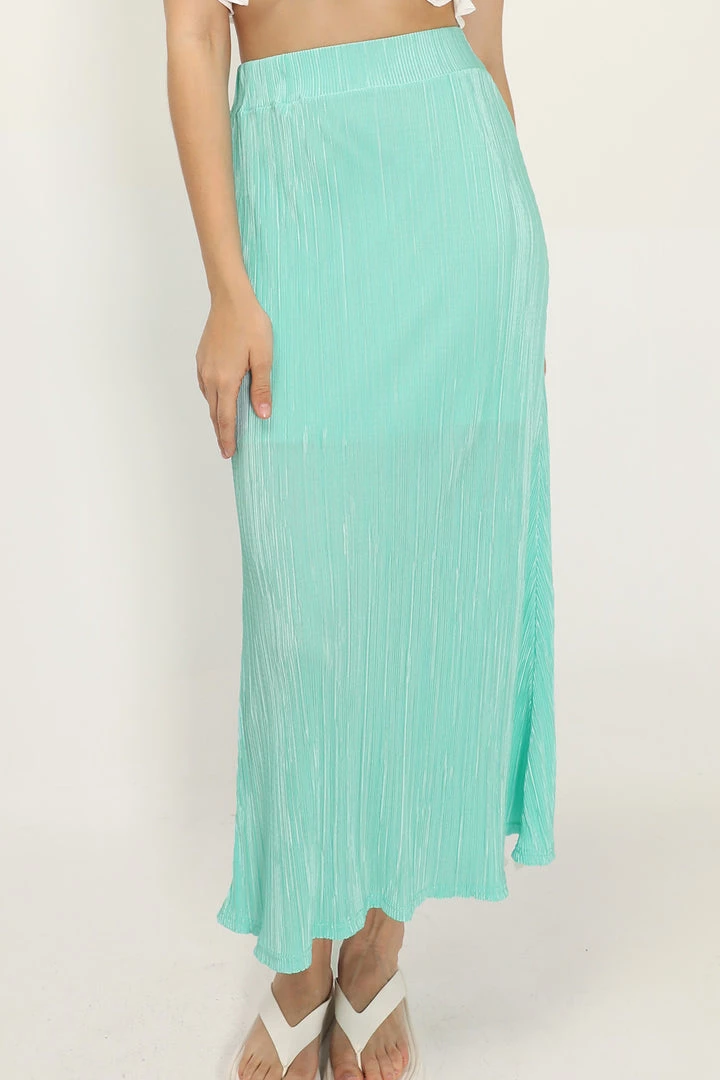 - This skirt features a well-stretchy crinkled material all over, a pleated material all over, an elasticized waistband, and slip on style