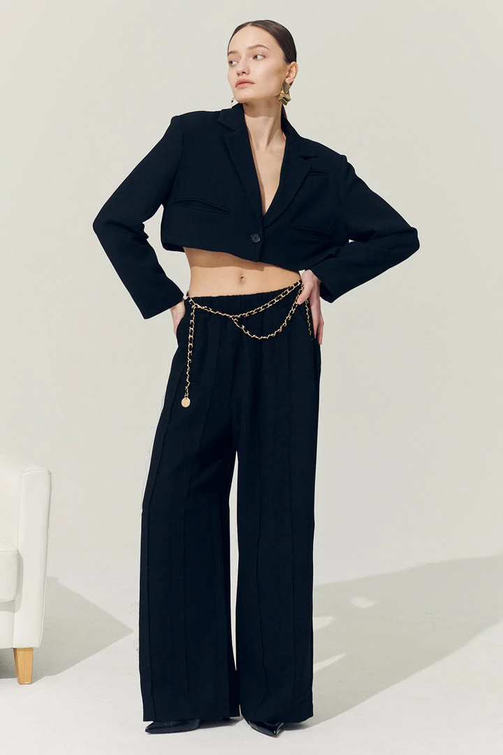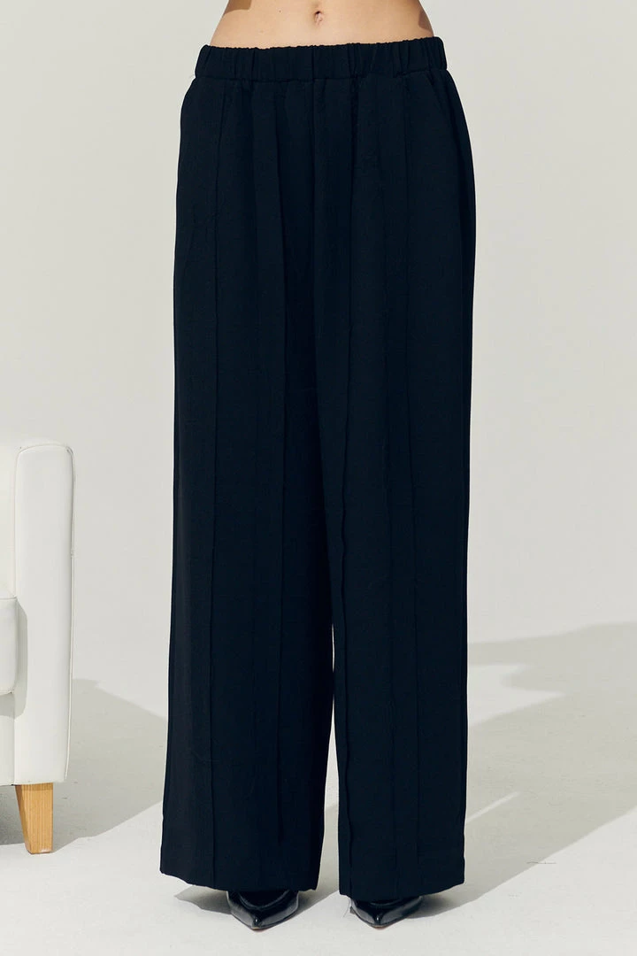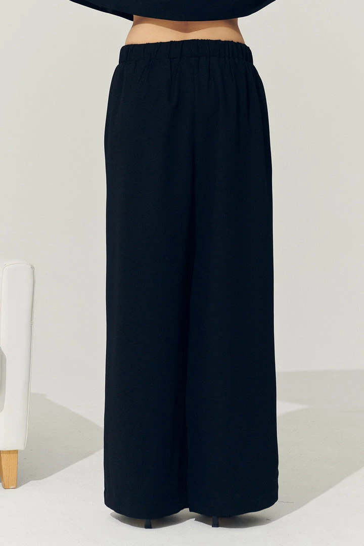 Supremely comfortable wide pants with frayed trim details. Flare and flowy pants with unique details is a perfect item for head turning style. This pants features elasticized waistband, wide leg fit, frayed trim.