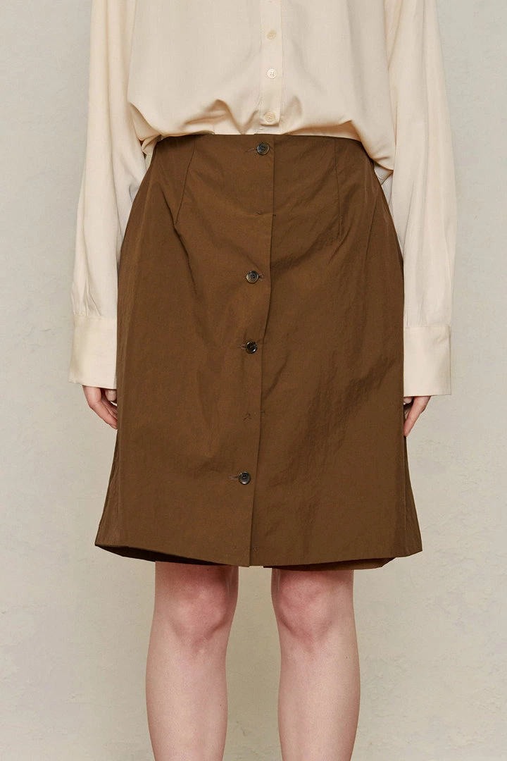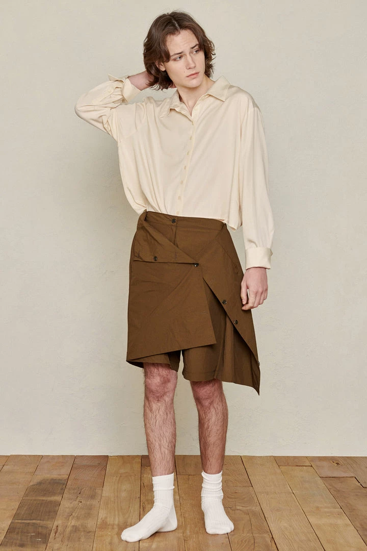 Easy-wear bermuda shorts made of crispy 100% Recycled Nylon.The Bermuda Shorts is layered and has buttons that pretended to be a skirt.