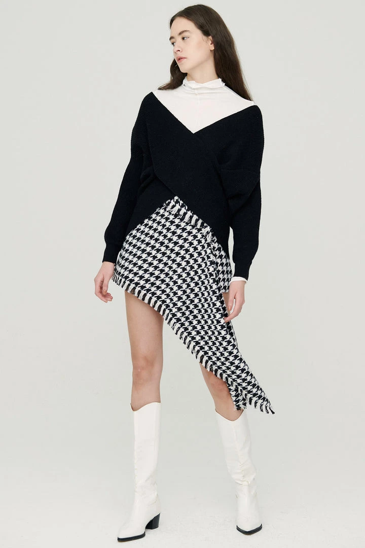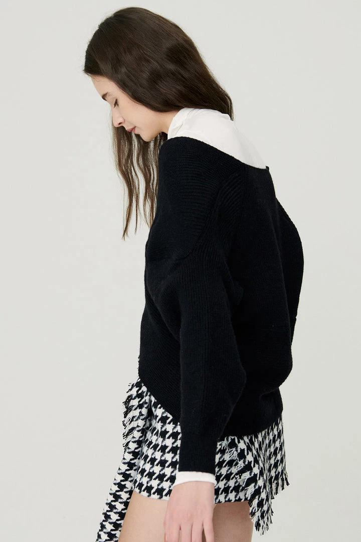 - Collarless sweater
