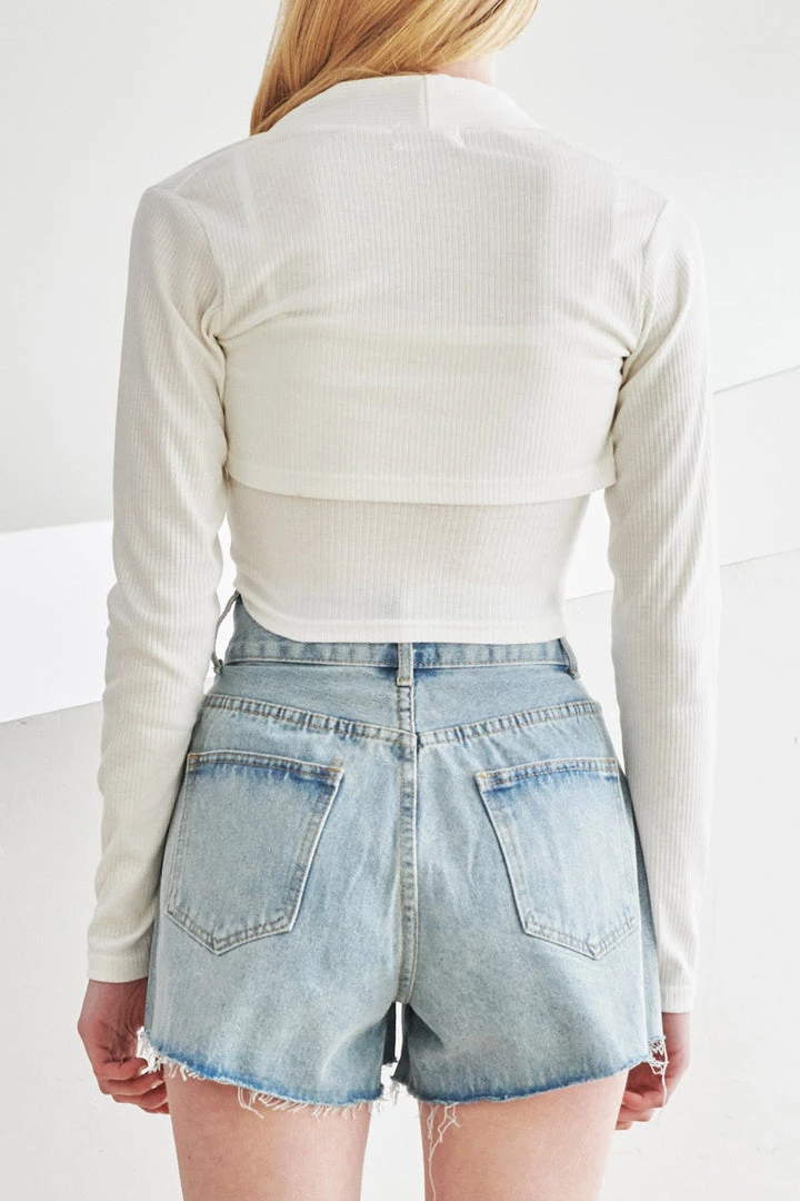 - Bolero: Open front style, long sleeve, crop length